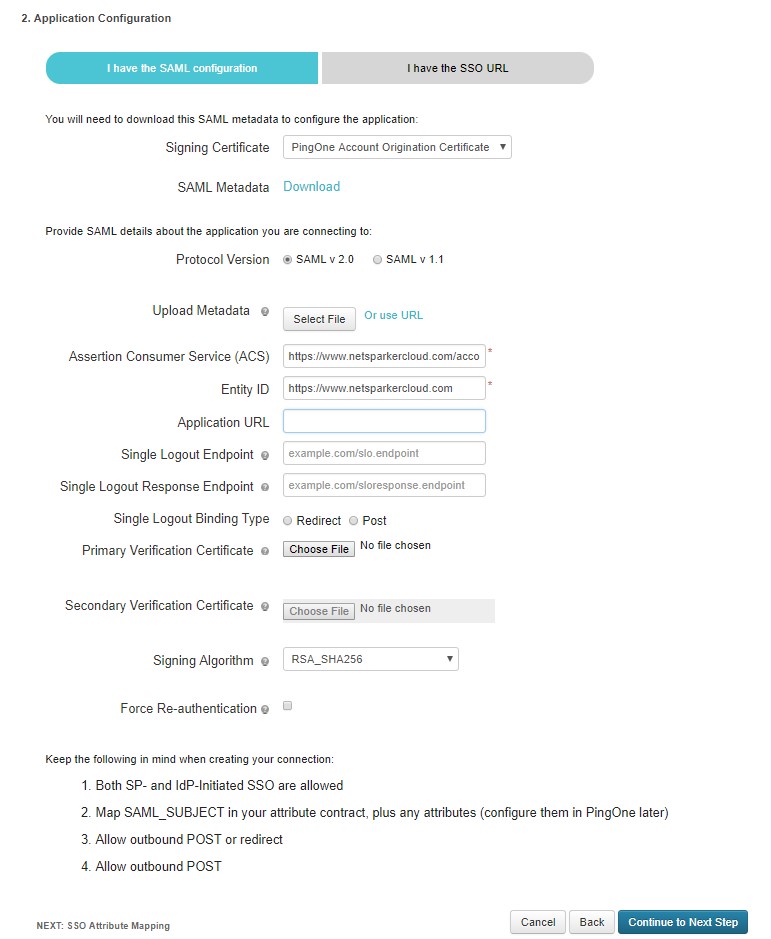Configuring Ping Identity Single Sign-On Integration with SAML